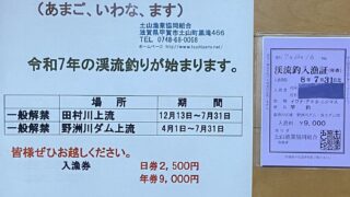 釣りパパ No.269 滋賀県甲賀市を流れる田村川(土山漁協管内)の渓流釣りが解禁しました。 2025.12.13 釣行。 天候 晴れ/曇り。 釣り時間 7:00〜12:00。 《溪流釣り仕掛け》 渓流竿4.5㍍。 天上糸0.8号。 道糸0.6号。 ハリス0.4号。 目印オレンジ、グリーン、ピンク、グリーンの4個。 オモリB〜2B。 ハリ6号。 エサはイクラとブドウムシ。 2025.12.31 釣りパパ