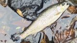流れの中を熊手でホリホリして濁りが消えるとシジミがザクザク出てきました。ジジミの絨毯です!