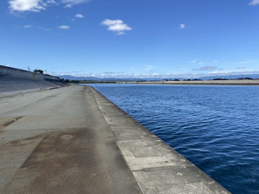 上流にはコンクリートの平場が津香良洲大橋まで続いています。