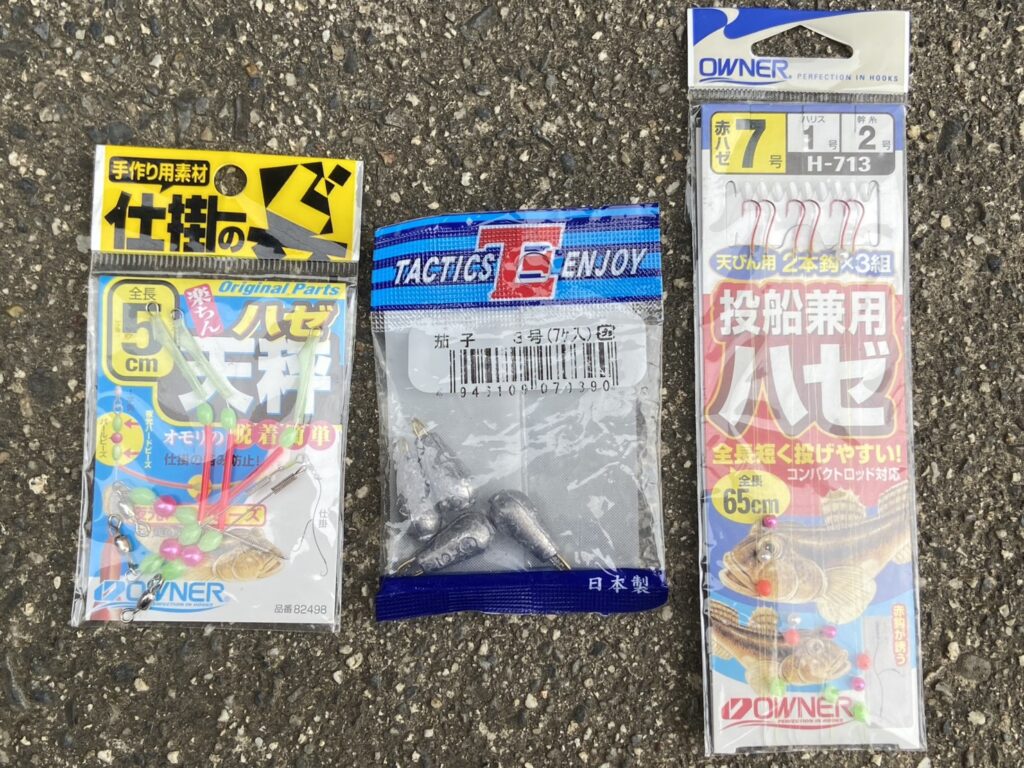 道糸ナイロン3号。 ハゼ天秤5㌢。 赤ハゼ7号2本バリ仕掛け。