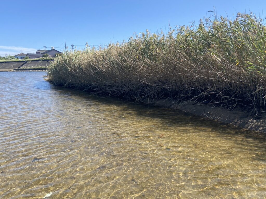 風が強く吹くと水面がザワザワして水底のシジミが見にくくなります。