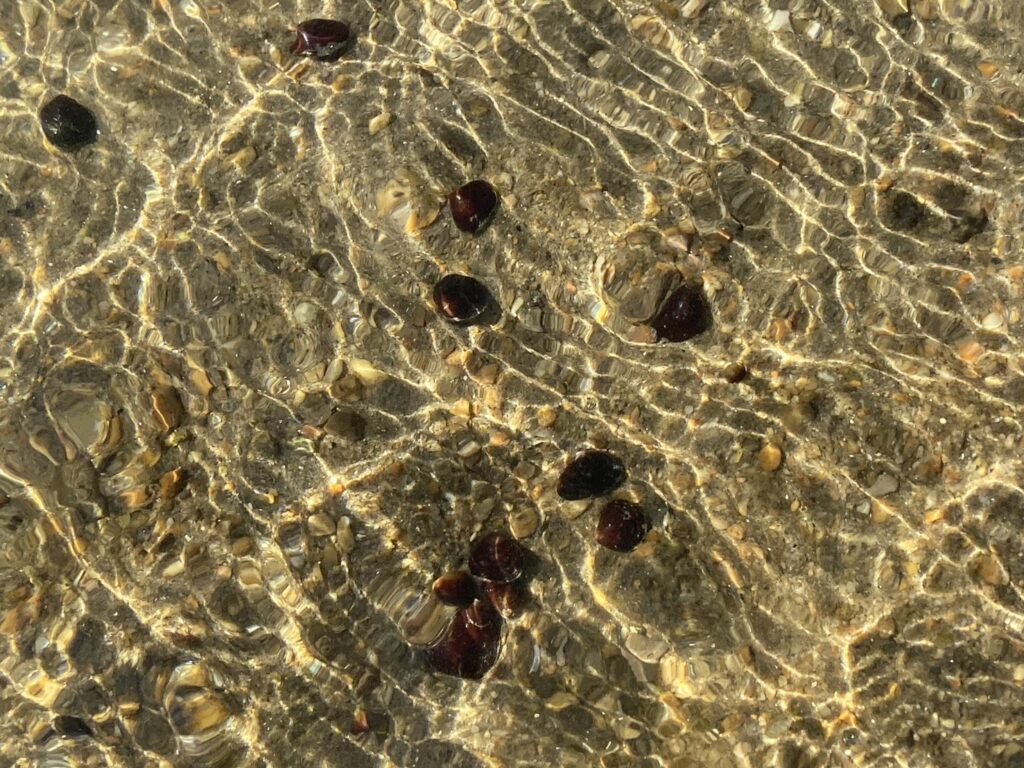 風が弱くなると水底のシジミが見えてきました。大きそうなシジミをピックアップしていきます。
