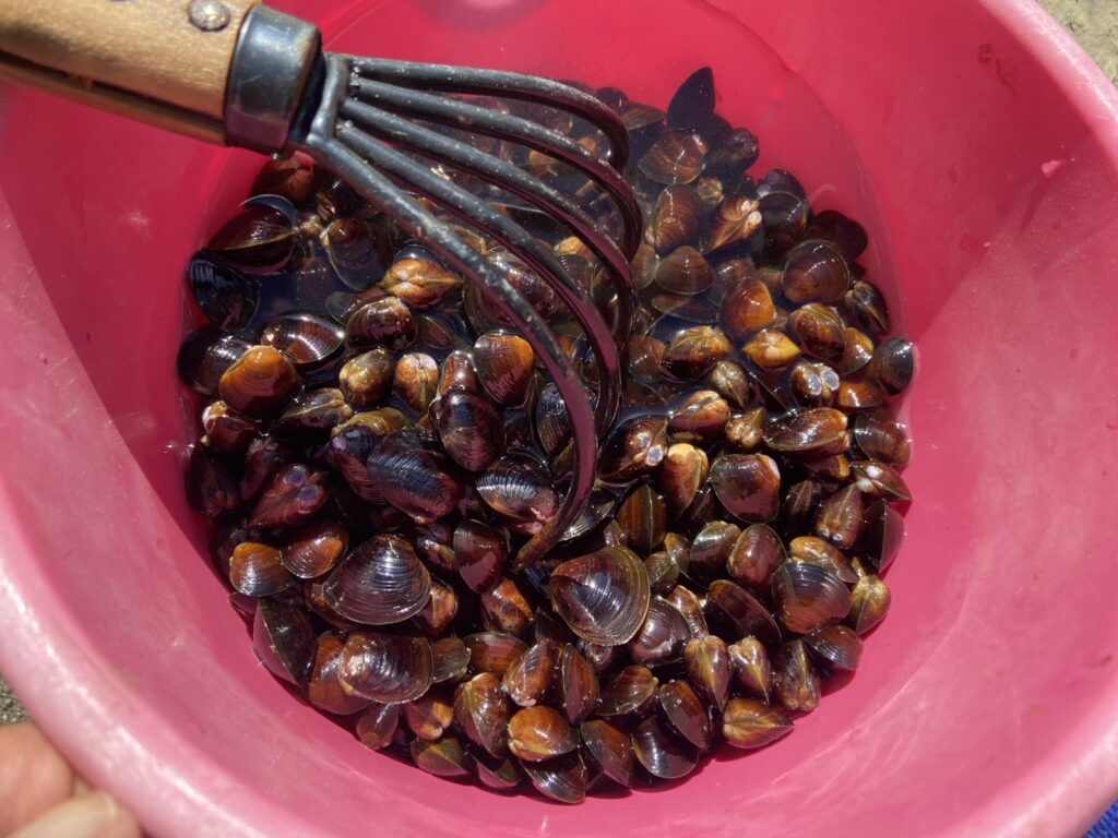 掘って掘って掘りまくって大きなシジミは採れませんでしたが中粒シジミをゲットです。
