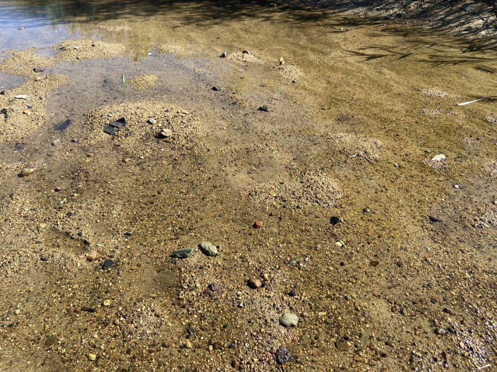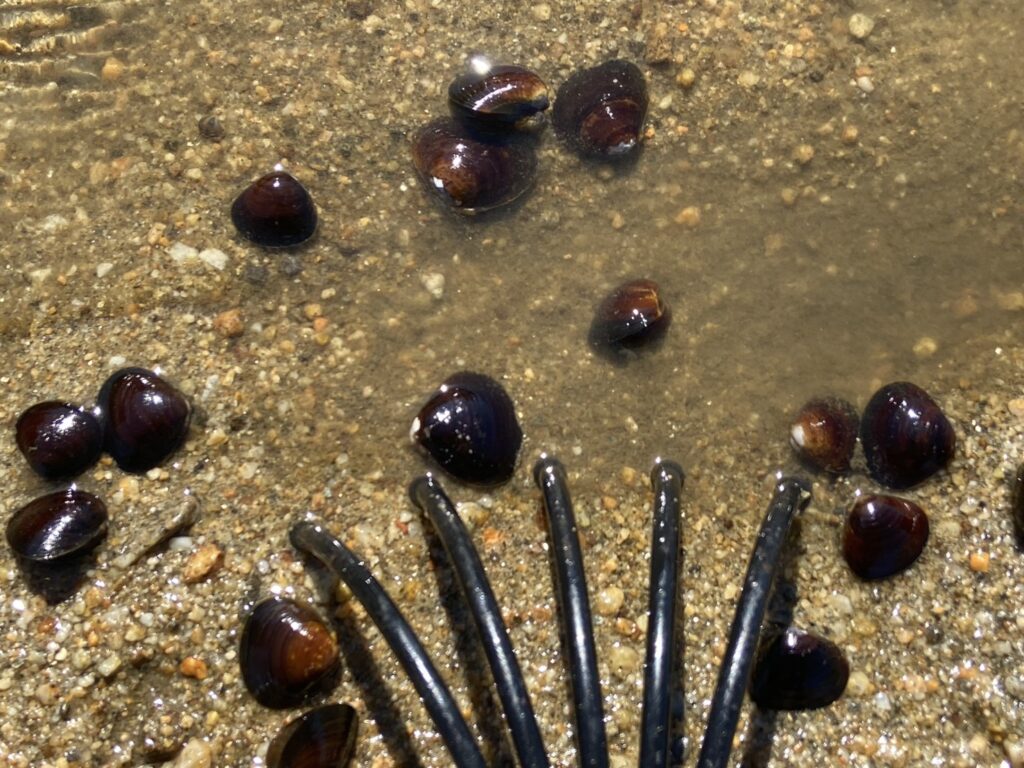 砂地が見えている下流側でホリホリすると小粒なシジミがザクザク出てきました。