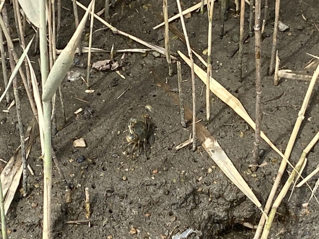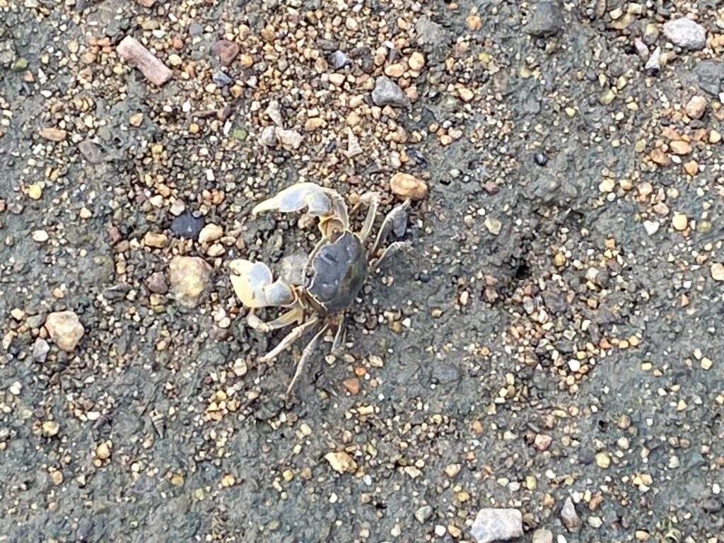近くではカニがチョロチョロ動き回っています。