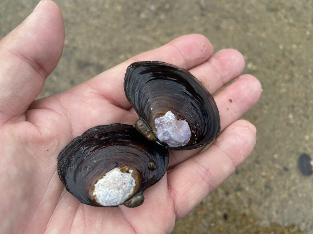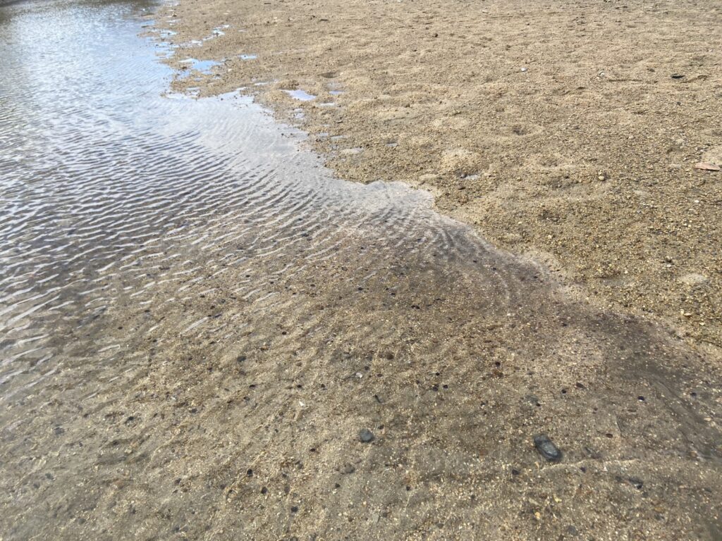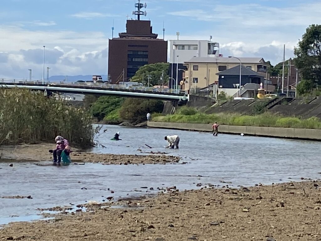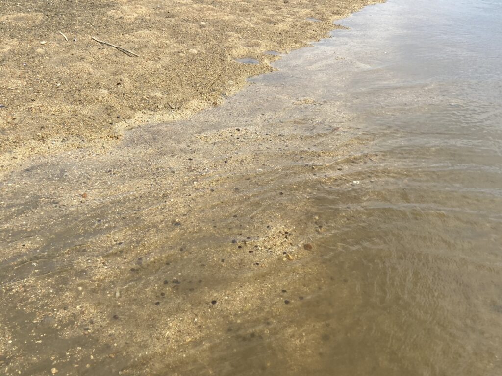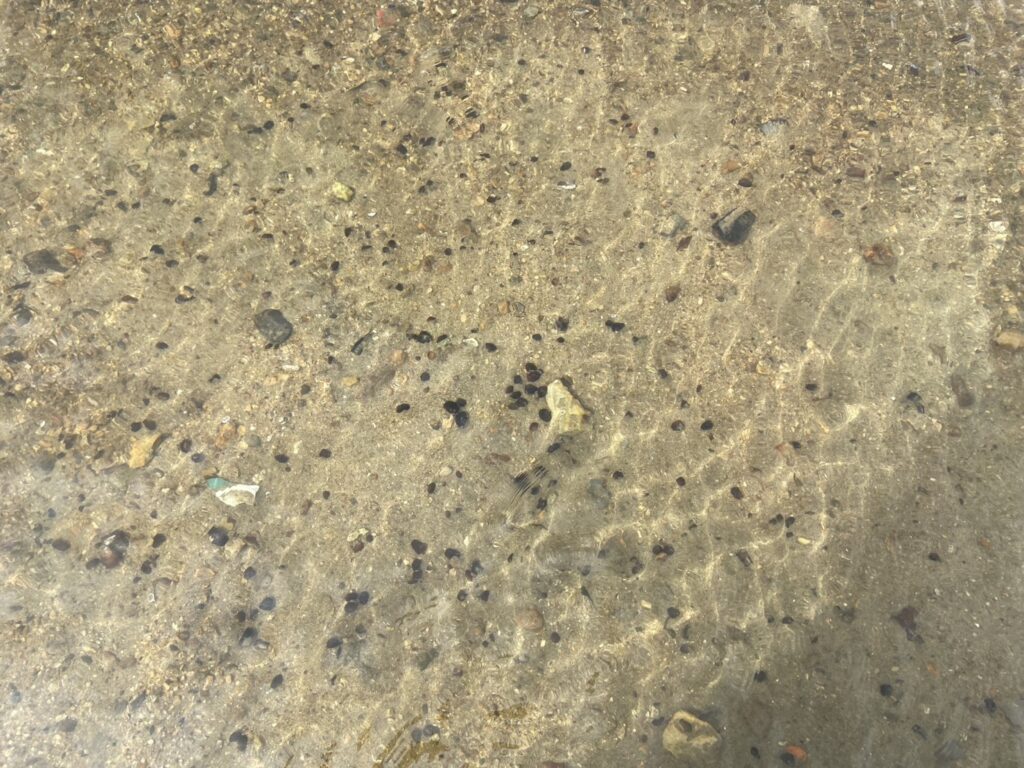 浅瀬には小粒なシジミがいっぱい残っています。