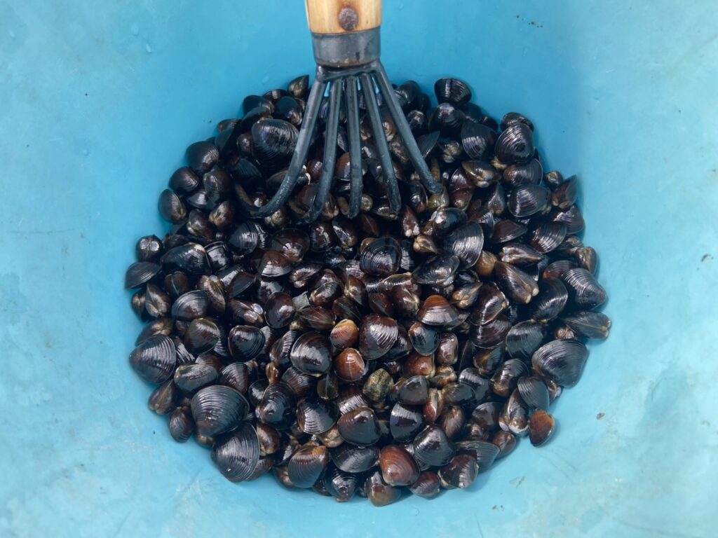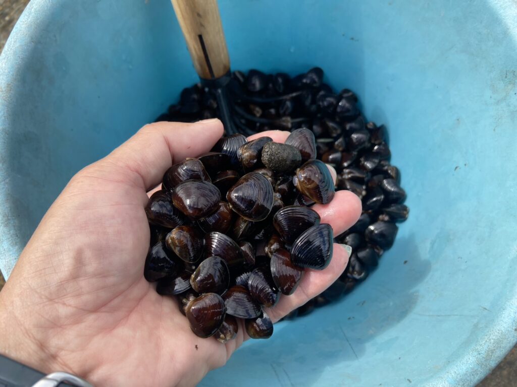 早速、ホリホリするとシジミがザクザク出てきました!