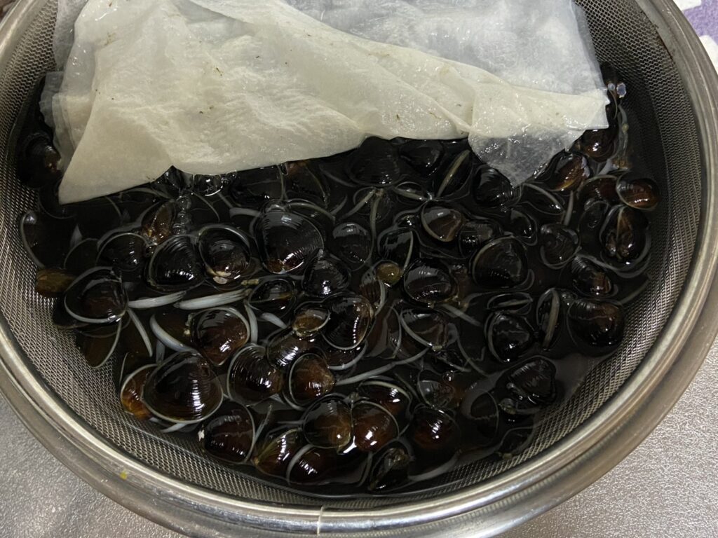 帰宅後は砂抜きです。