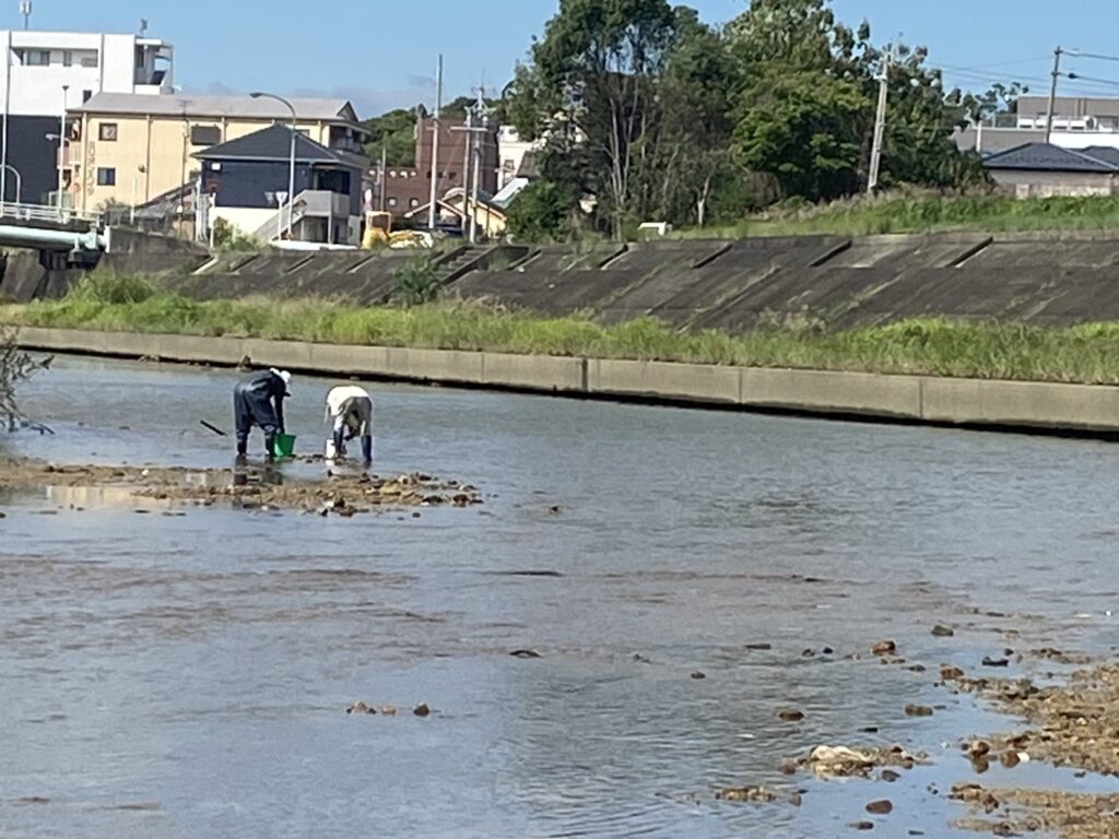 到着すると上流側にも下流側にも先客がホリホリしていました。