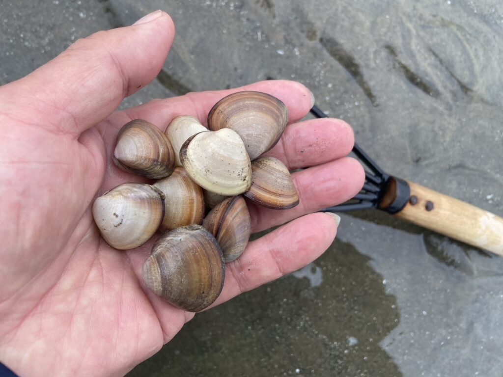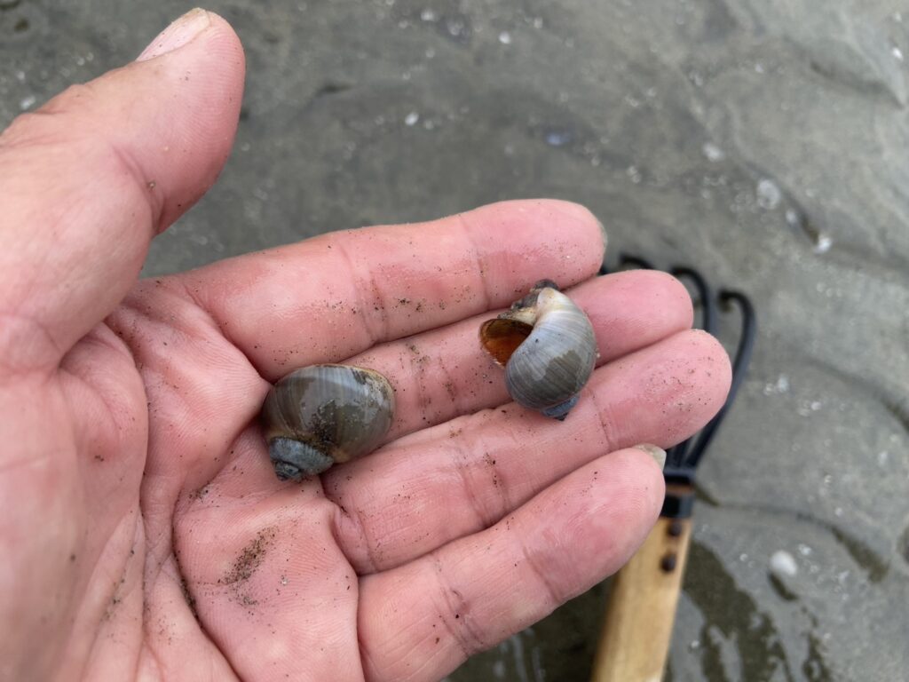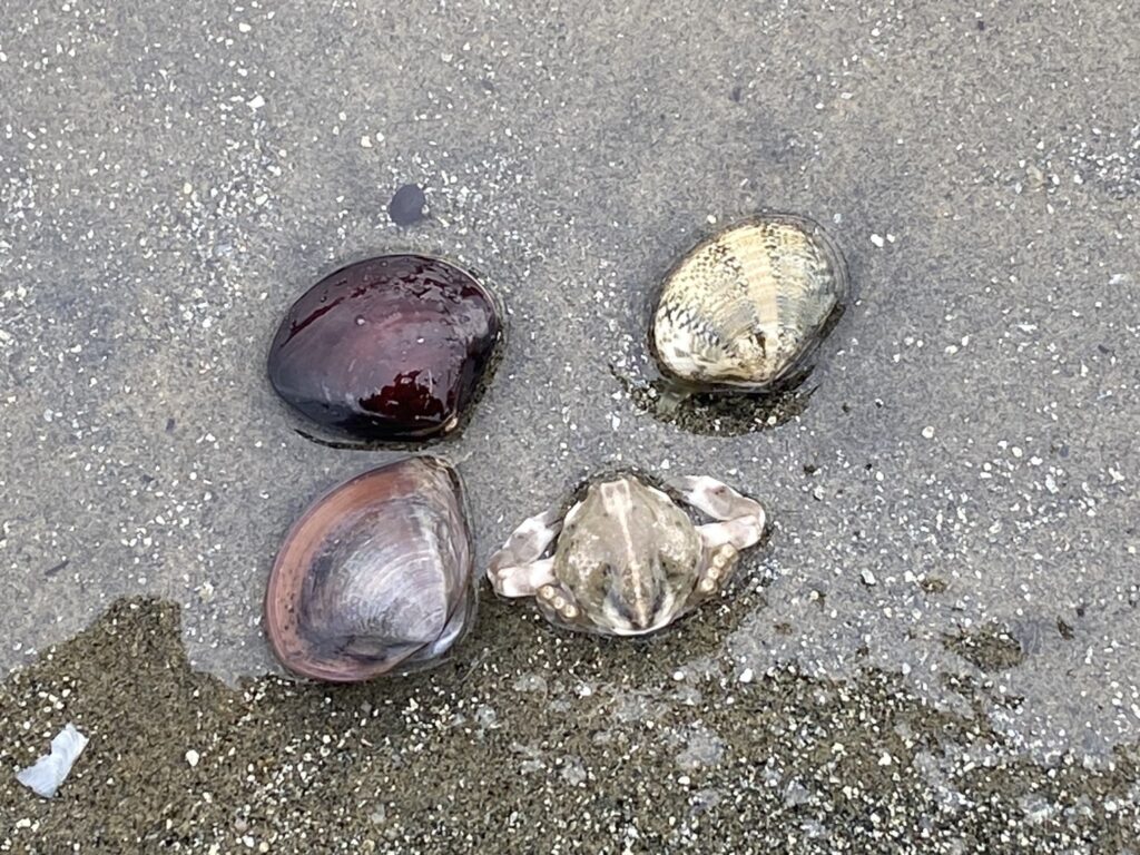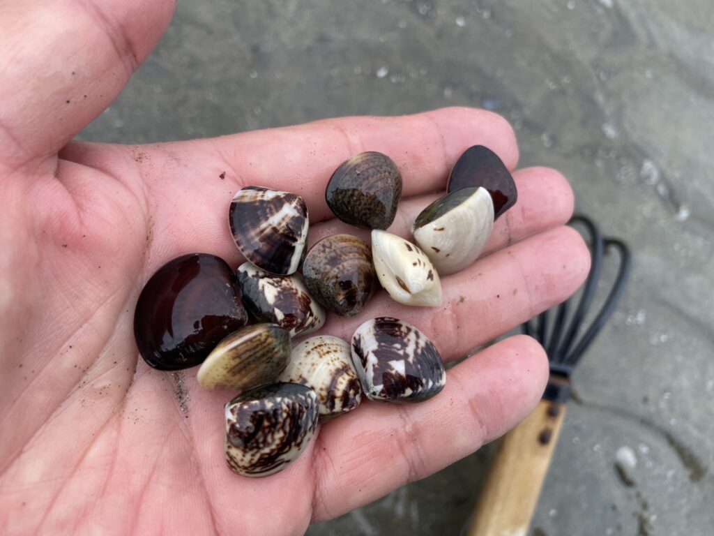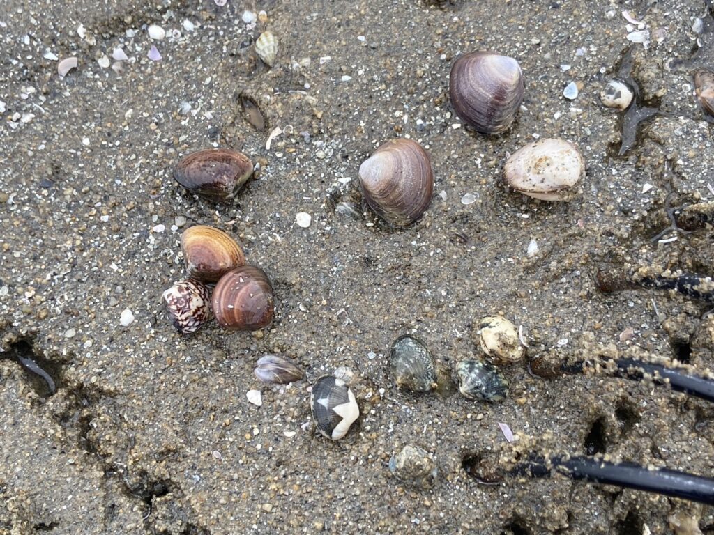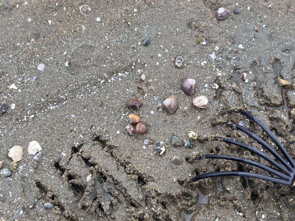 少しずつ移動しながらホリホリを続けますが出てくるのは小っちゃいハマグリ、シオフキガイ、アサリばかりです。