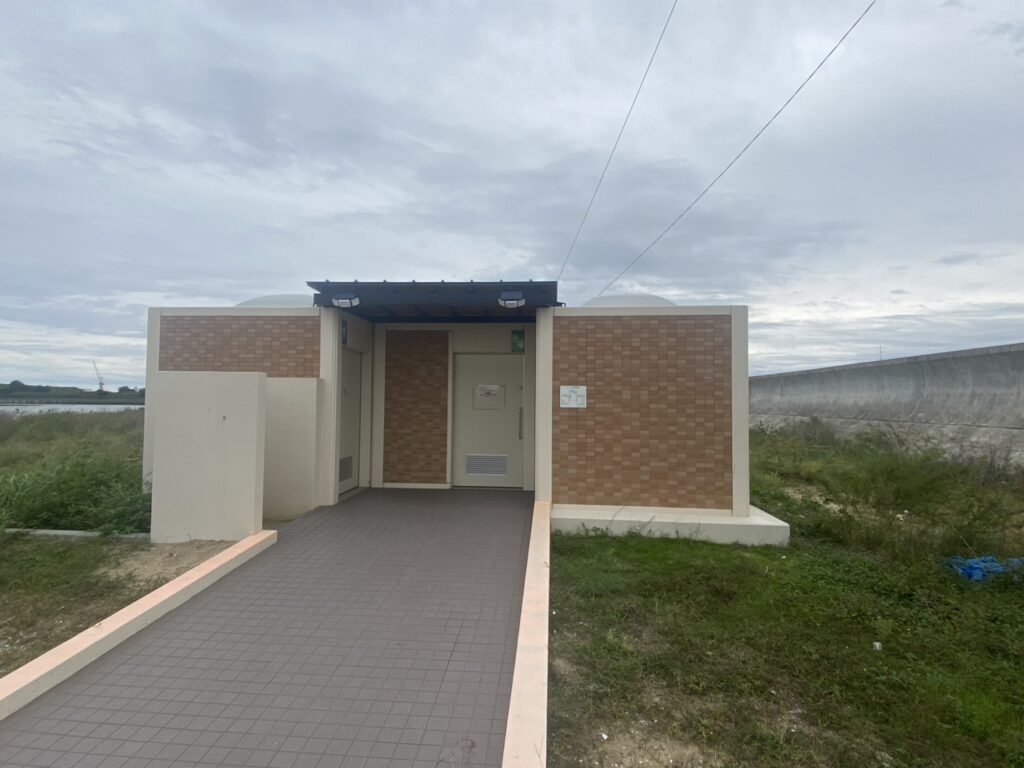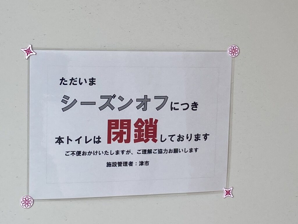 護岸道路沿いのトイレは使用可能ですが砂浜のトイレは『シーズンオフにつき閉鎖』になっていますから注意してください。