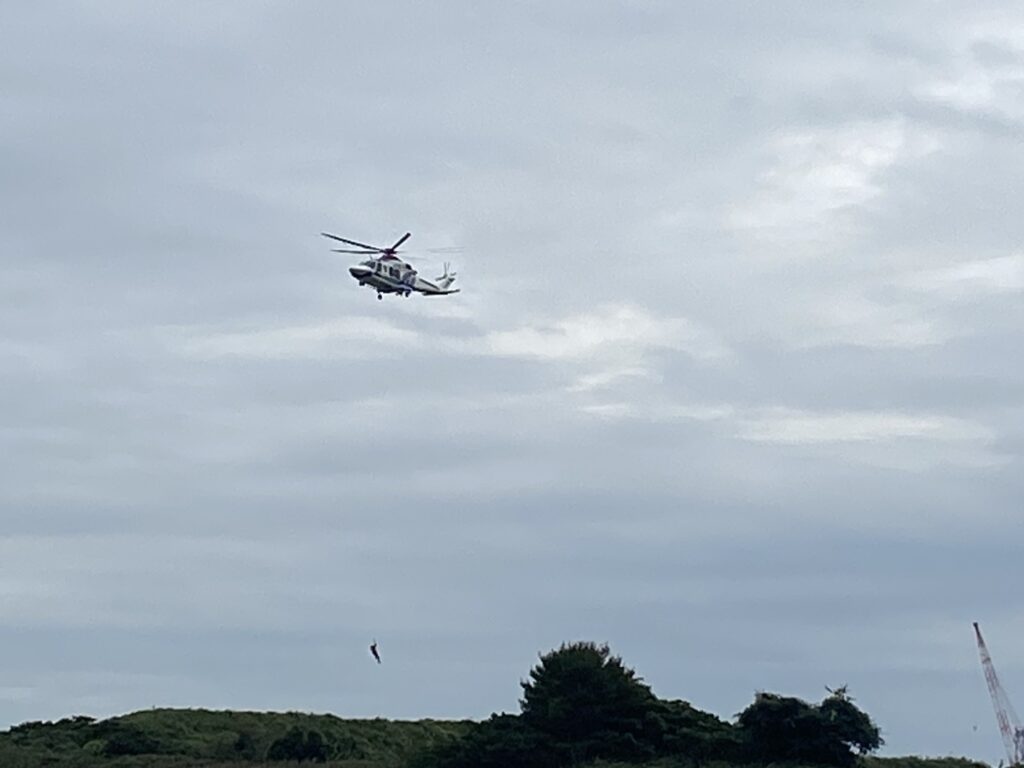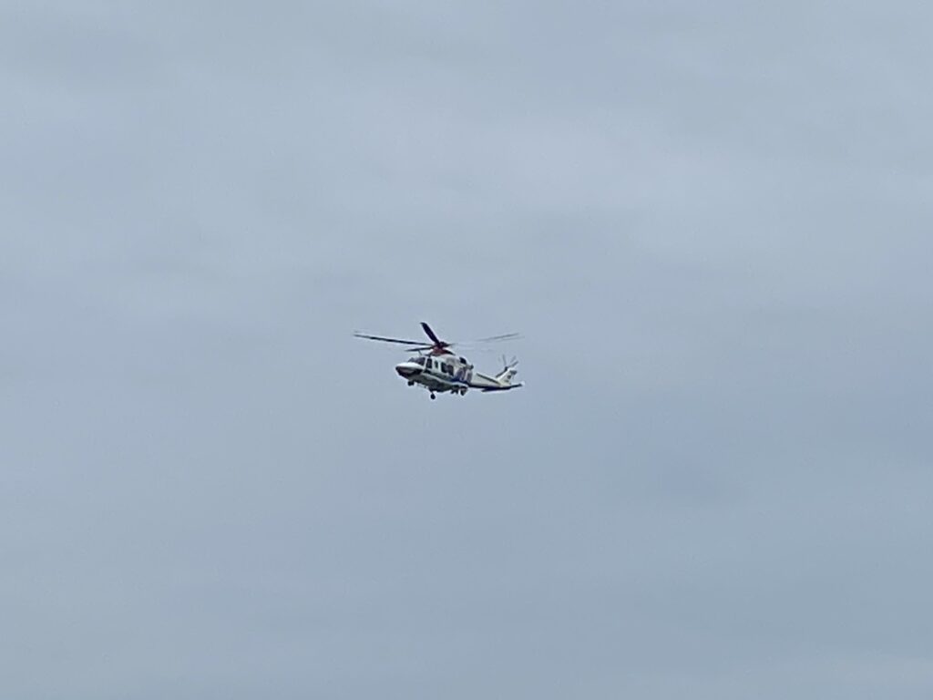 近くではゴーゴーと音を響かせてヘリコプターが訓練飛行していました。