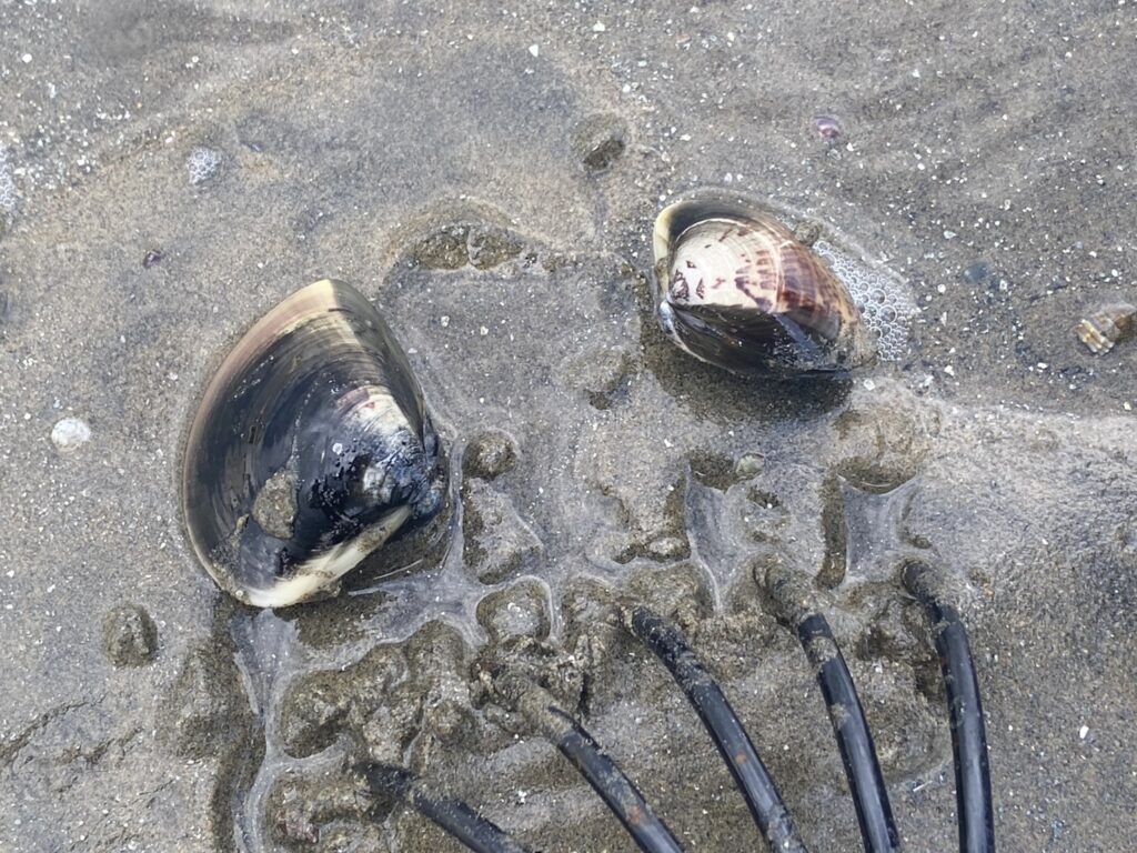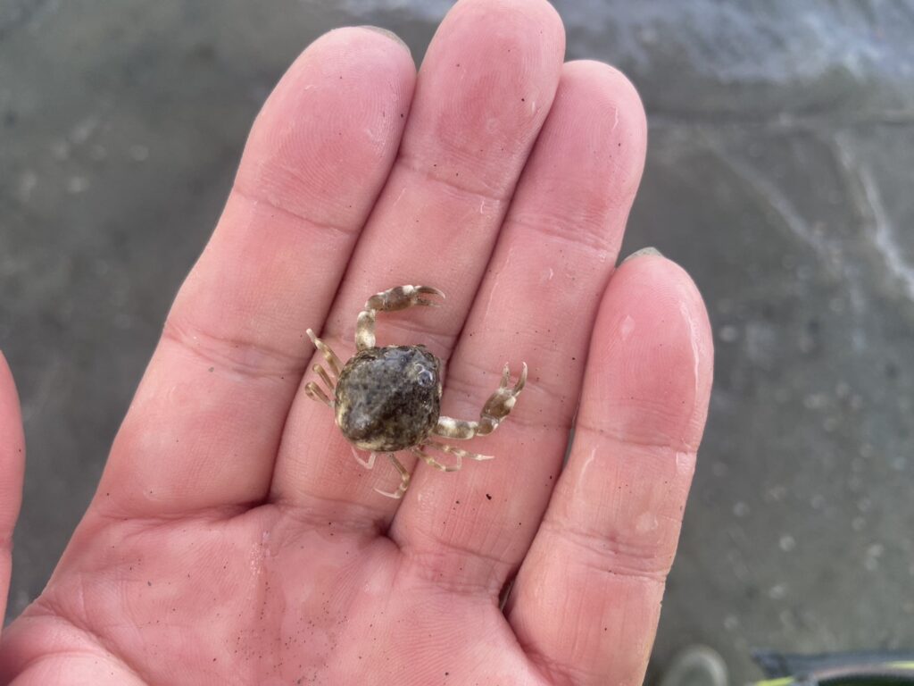 大きなハマグリを探して深くホリホリしてポツリポツリとハマグリをゲットしているとヤドカリやカニも出てきました。