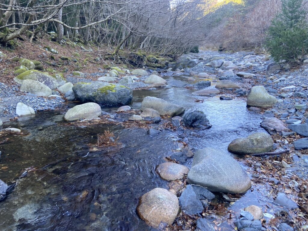 上流域のエン堤下に到着して明るくなってから入渓しました。