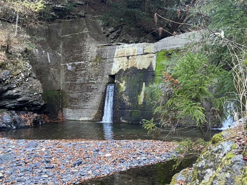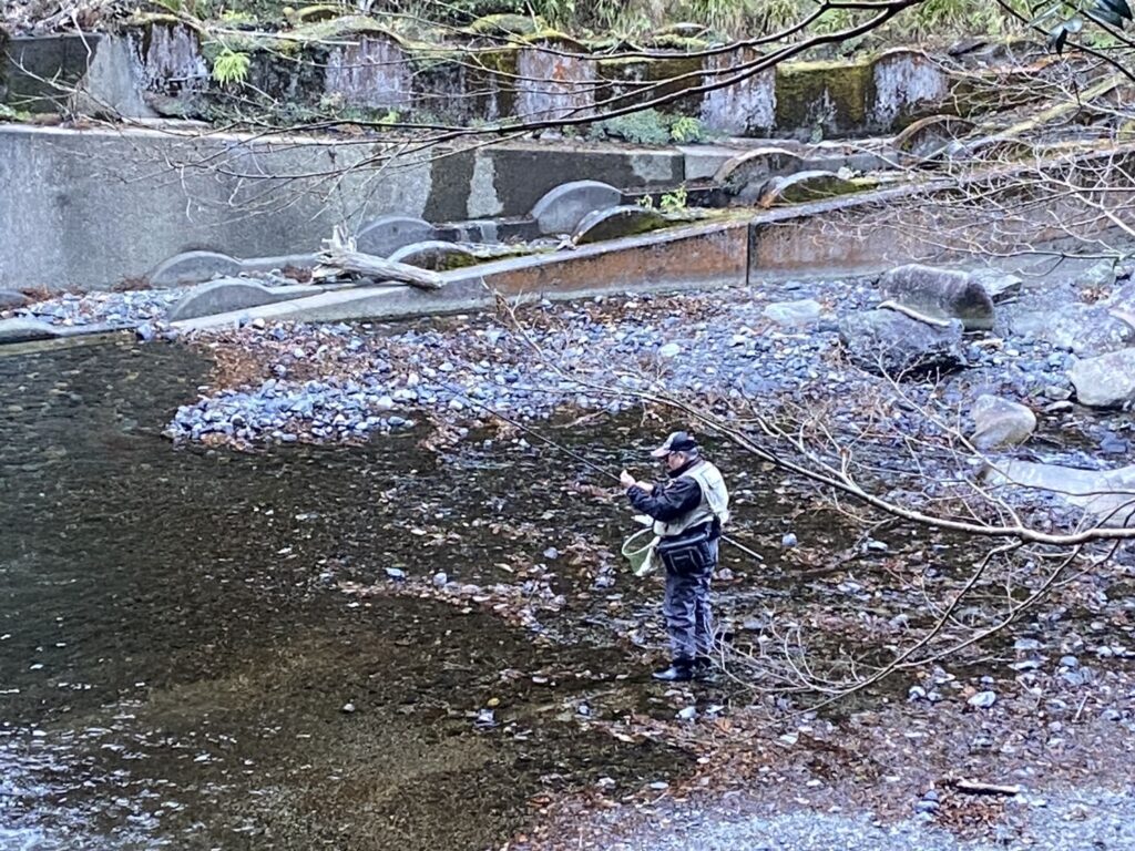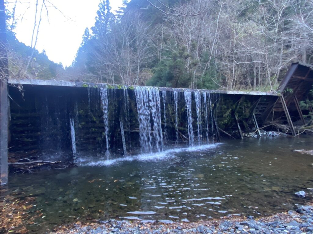 皆さん治山施設として設けられたエン堤下のプールを狙っていきます。