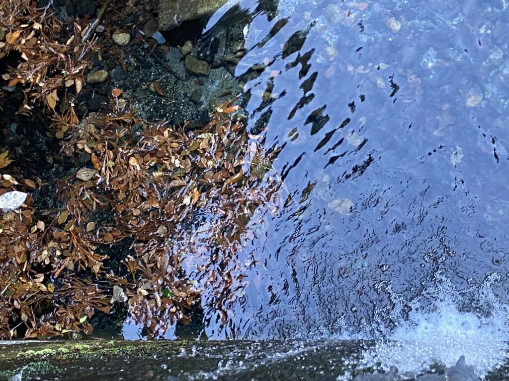 水面に浮かんでいる枯れ葉の下を狙ってみました。