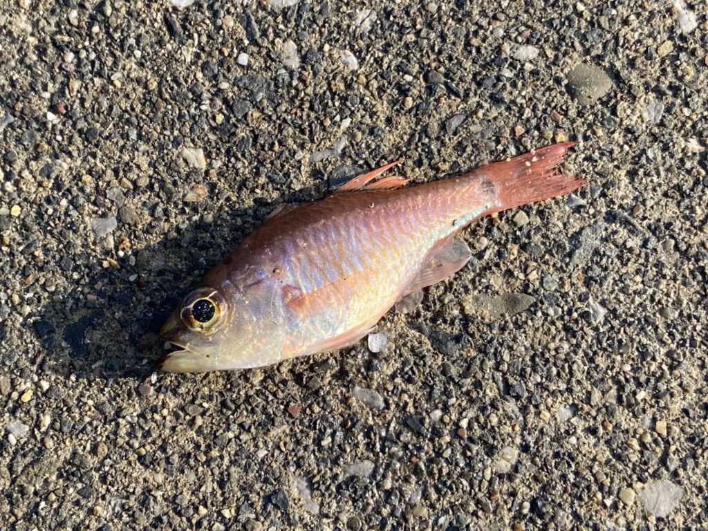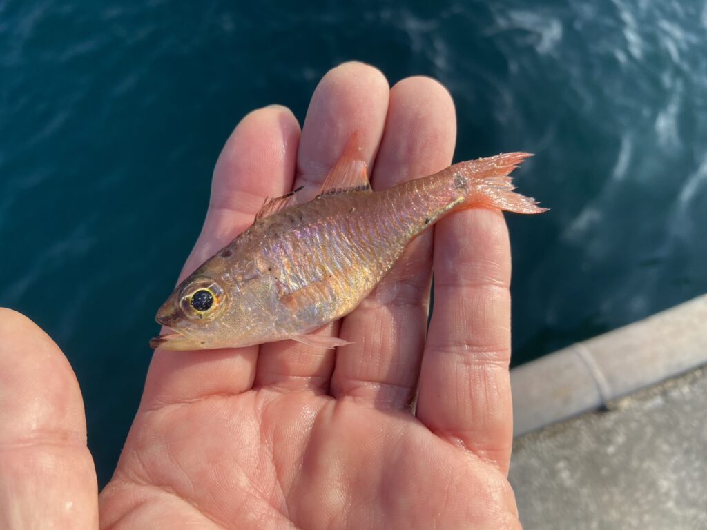 アジのヒットに喜んでいるとネンプツダイが邪魔をします。
