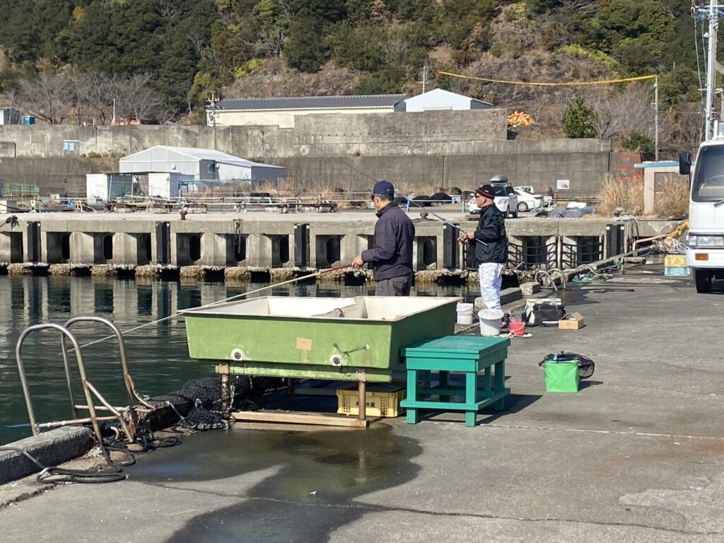 方座浦漁港と古和浦漁港を下見しましたが先客が数人竿を出していて場所も狭いので諦めて錦漁港まで車を走らせました。