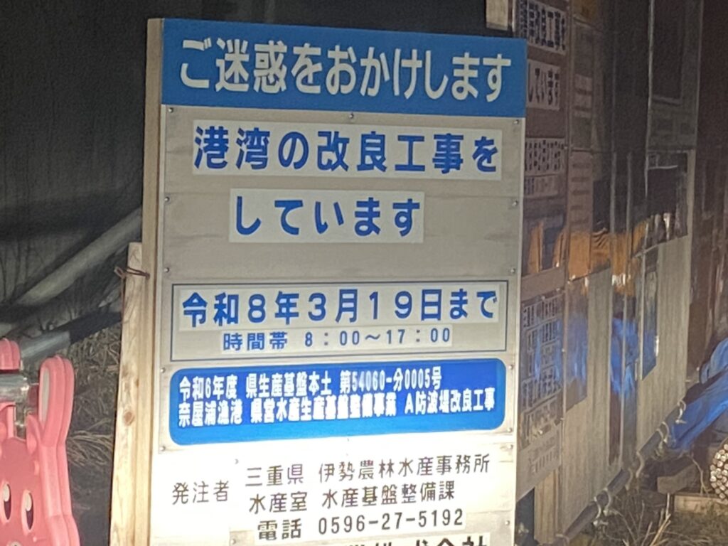 最初は南伊勢町の奈屋浦漁港の予定で夜明け前に到着すると『港湾改良工事のため令和8年3月19日まで関係者以外立入禁止』となっていてガッカリです(泣)