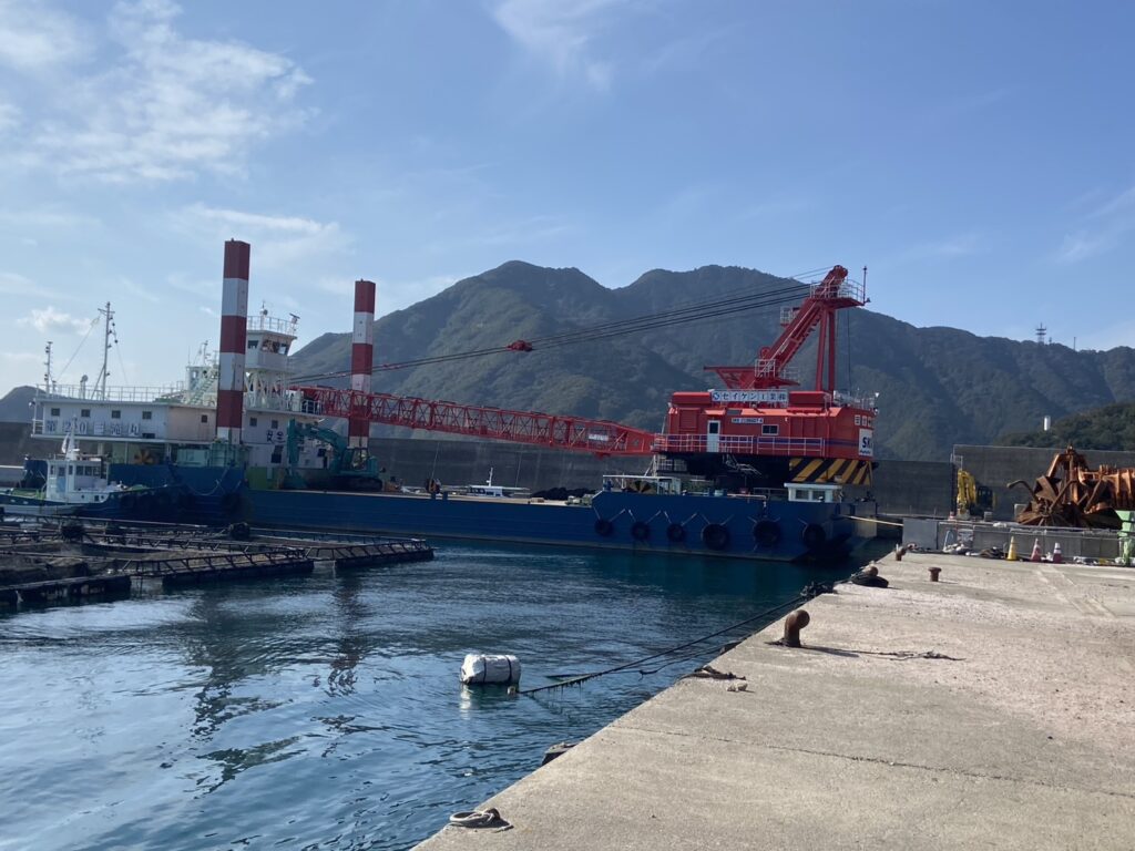 港口の大きな突堤は工事中で周辺は立入禁止になっています。