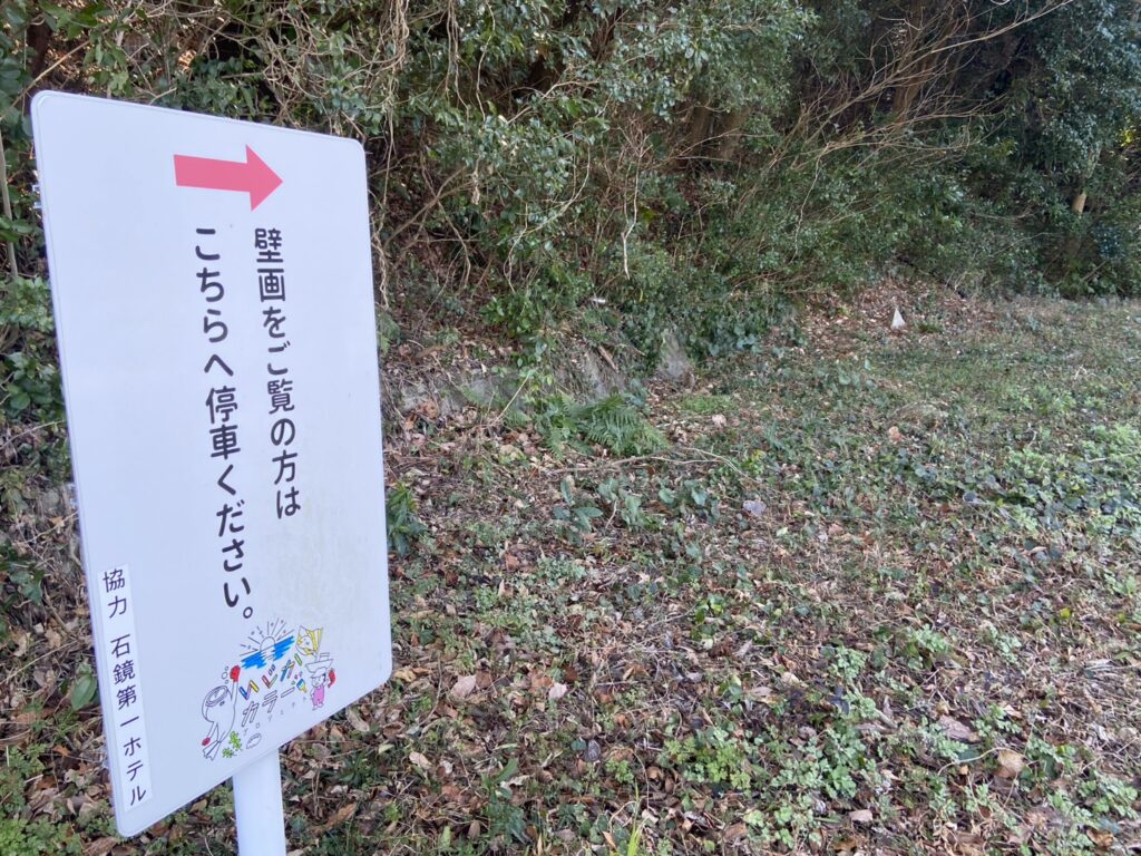 大きな壁画の近くには駐車場もあります。