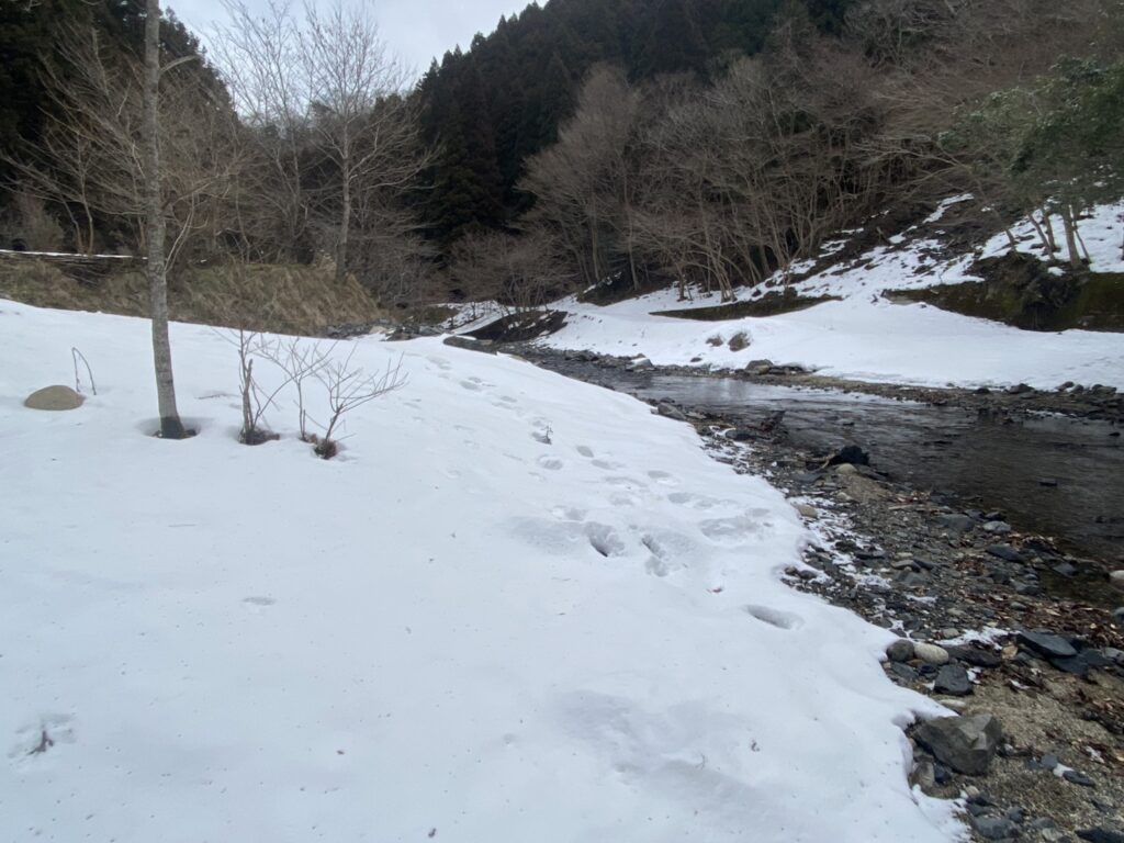 まだ薄暗いのに先行者の車が止まっていたので上流域まで進むと明るくなってきました。