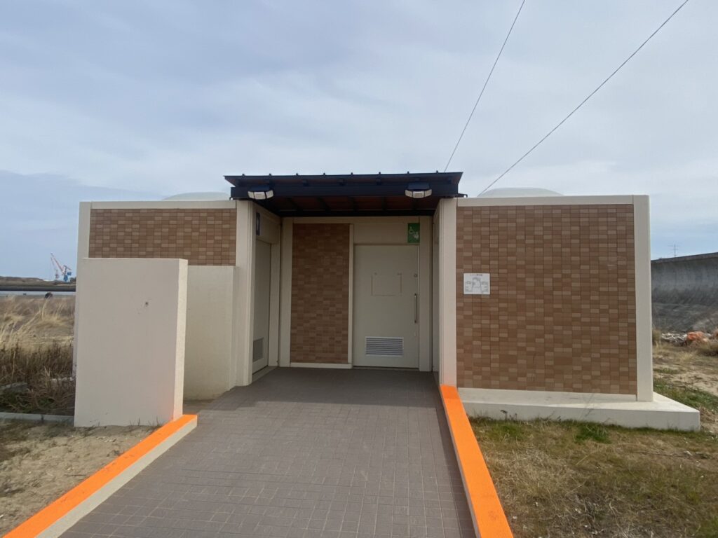 海岸入り口の護岸道路脇にはトイレがあり洗い場もあるので潮干狩り後に熊手や長靴を洗えるので便利です。