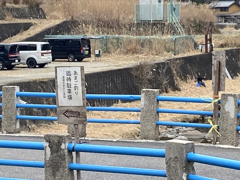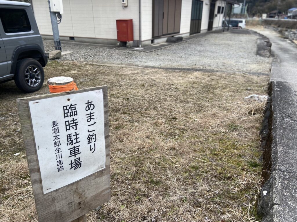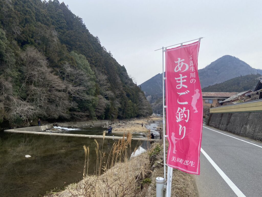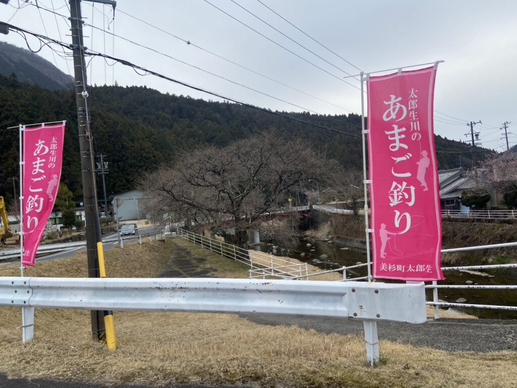 太郎生殿橋に到着すると赤い『あまご釣り』ののぼり旗が出迎えてくれました。