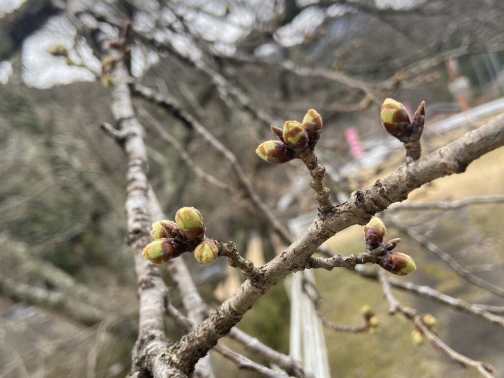 川沿いの桜はまだツボミです。