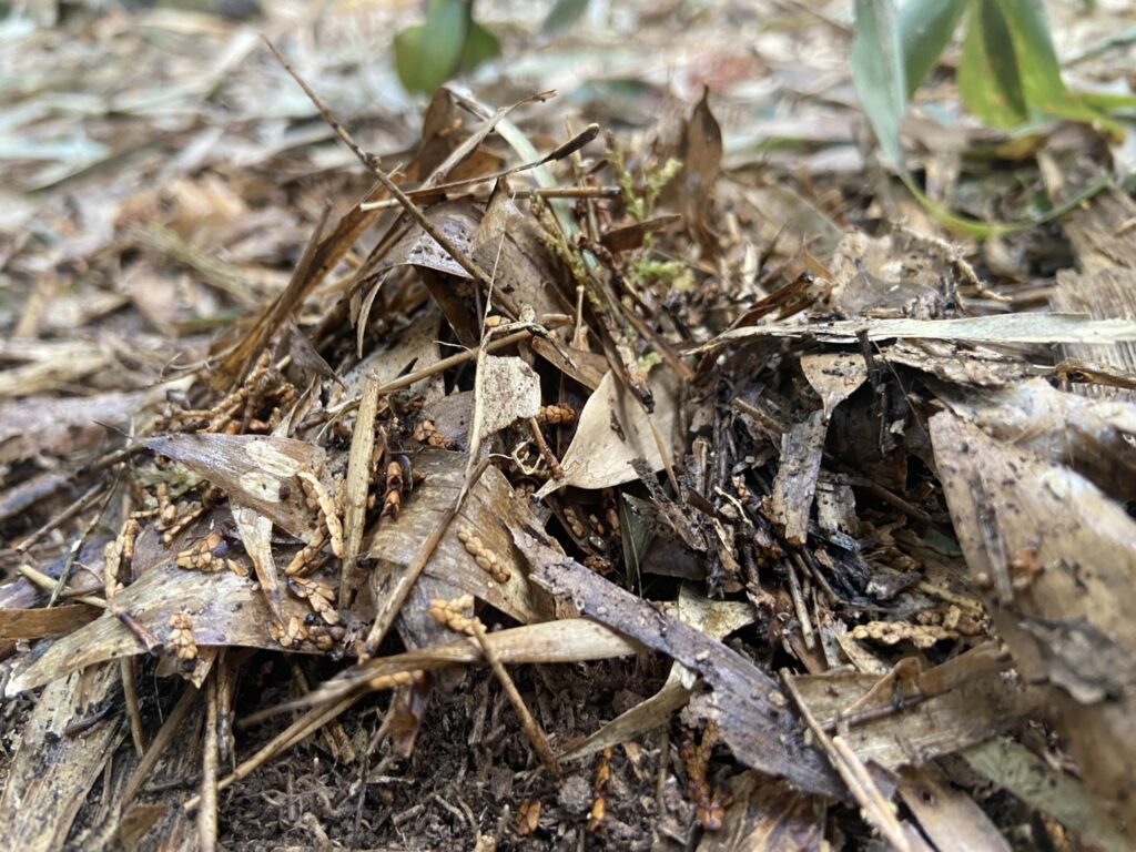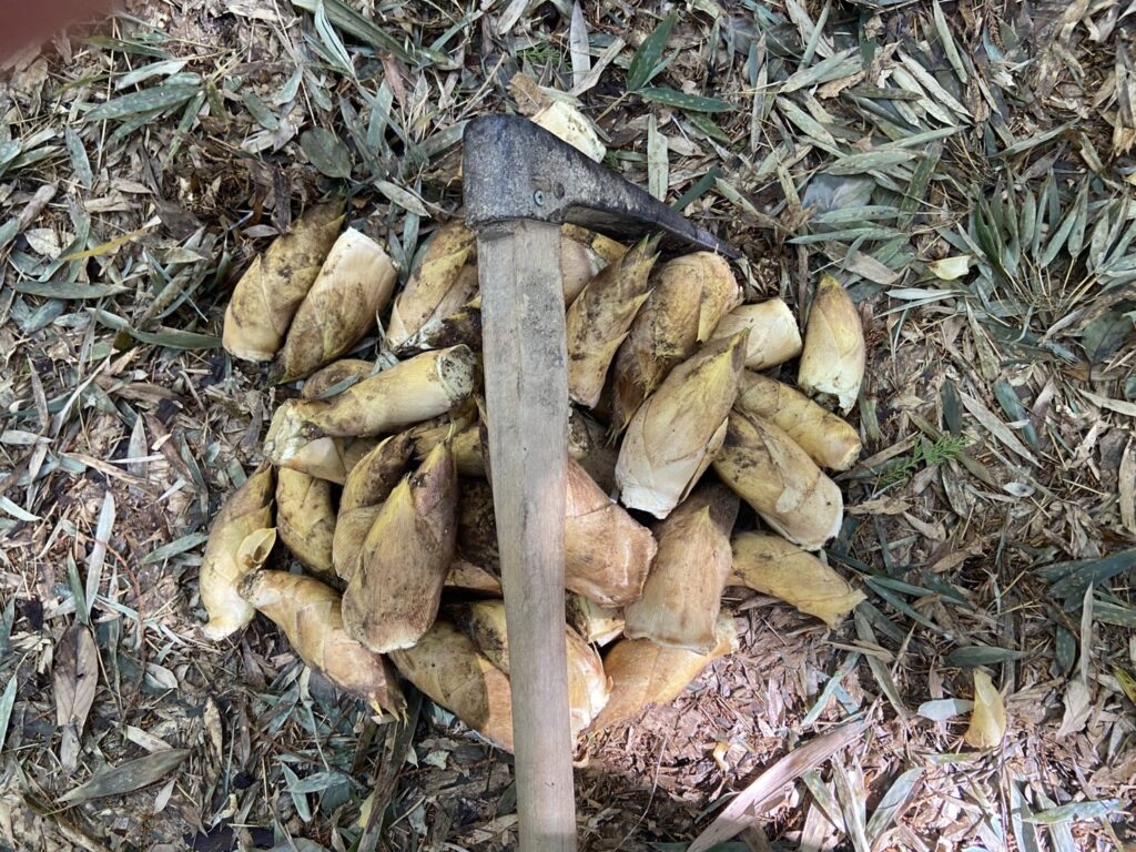 竹林に入って落ち葉が盛り上がっている所を探していきます。