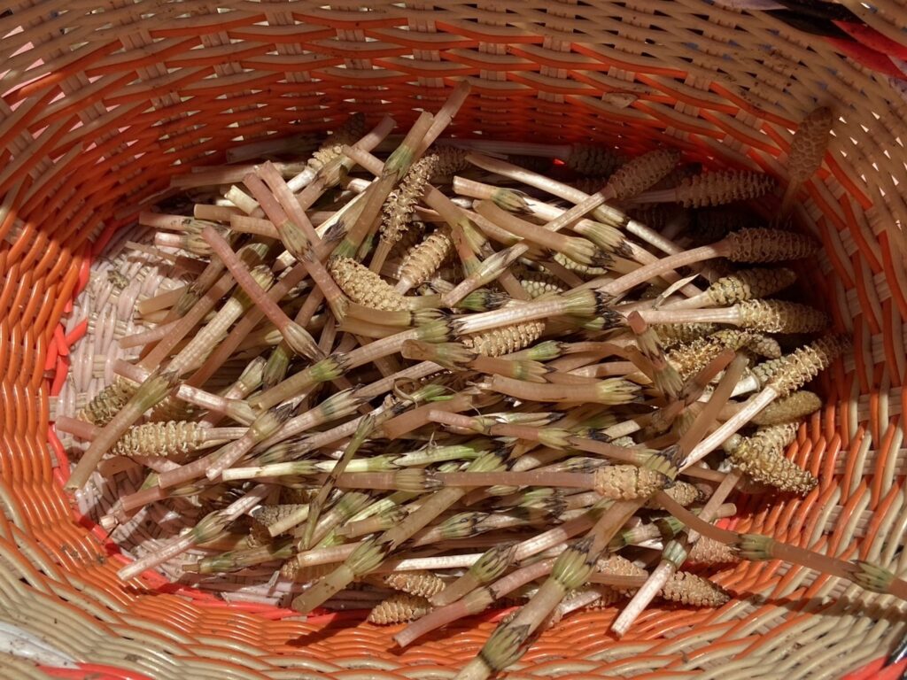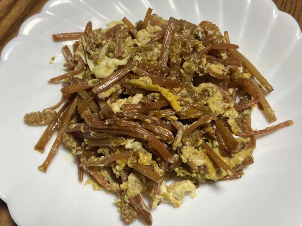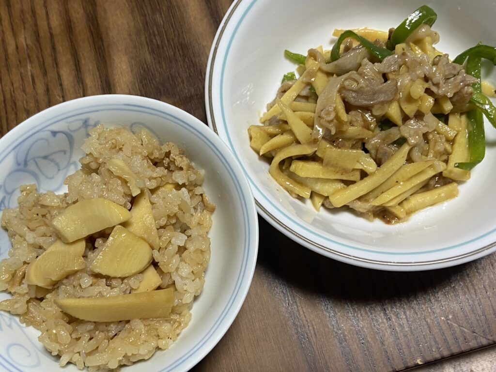 翌日の夕食はタケノコご飯と青椒肉絲にツクシの卵とじをパクパクいただきました。