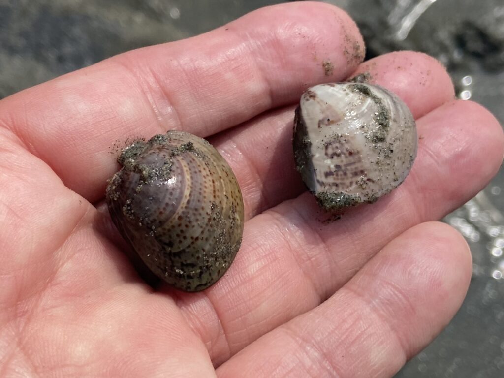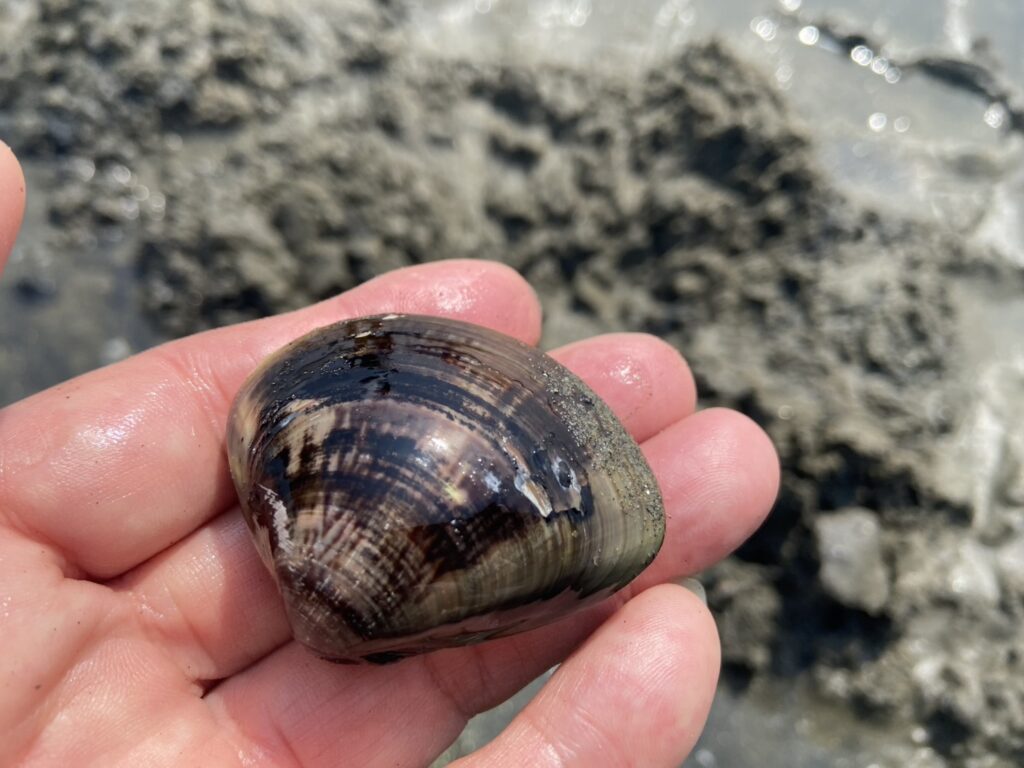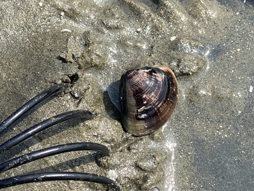 巻貝の場所はパスして掘り掘りしていると大粒ハマグリ出ましたぁー!