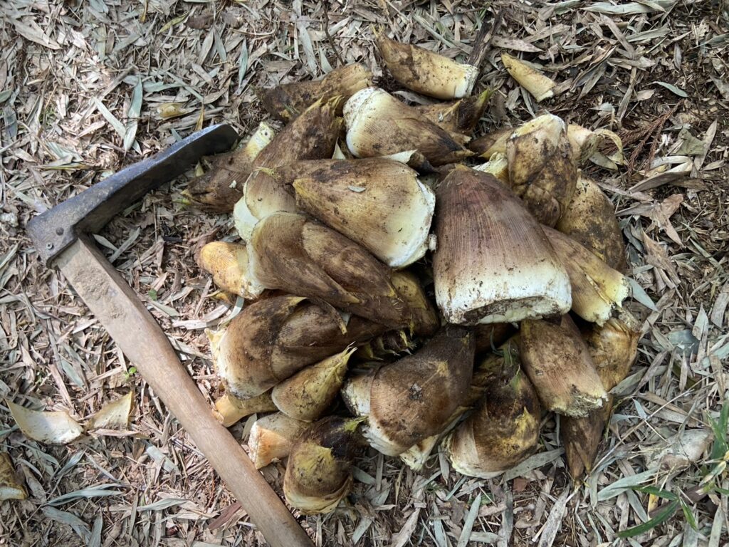汗を流しながらたくさんタケノコを掘りました。