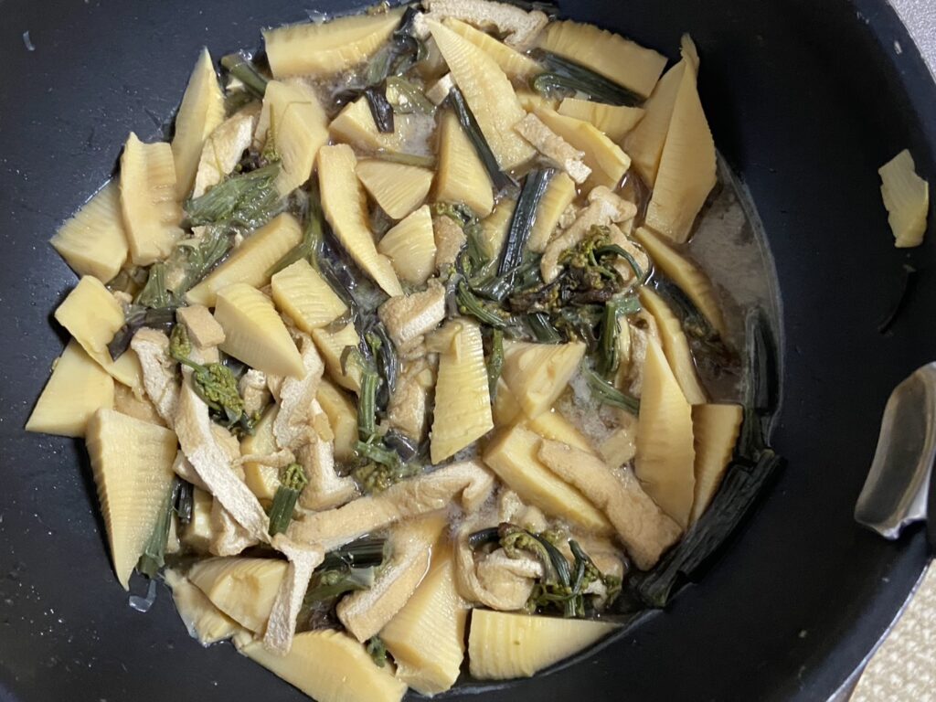 翌日の夕食はタケノコとワラビの煮物を美味しくいただきました♪