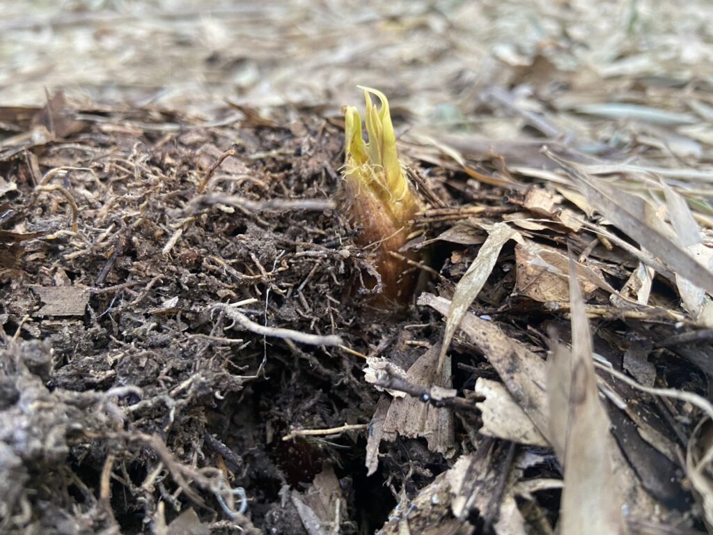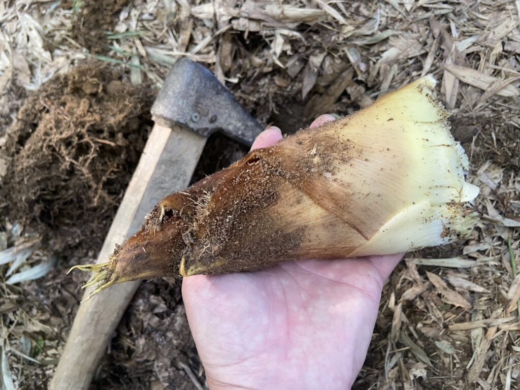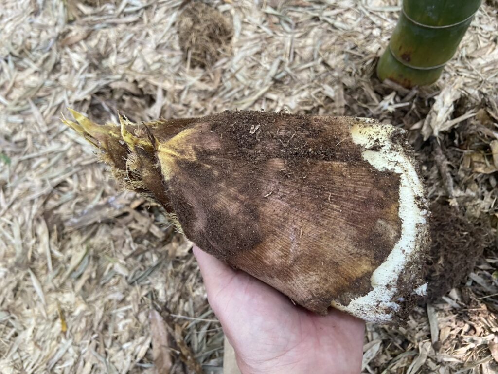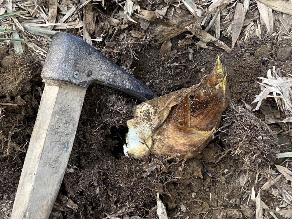 完全に頭が見えているタケノコを発見!