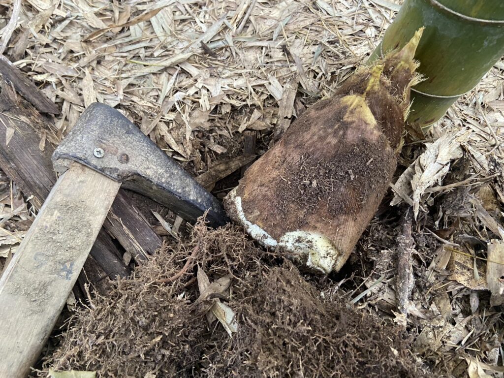傷つけないように掘ると型の良いタケノコが掘れました。