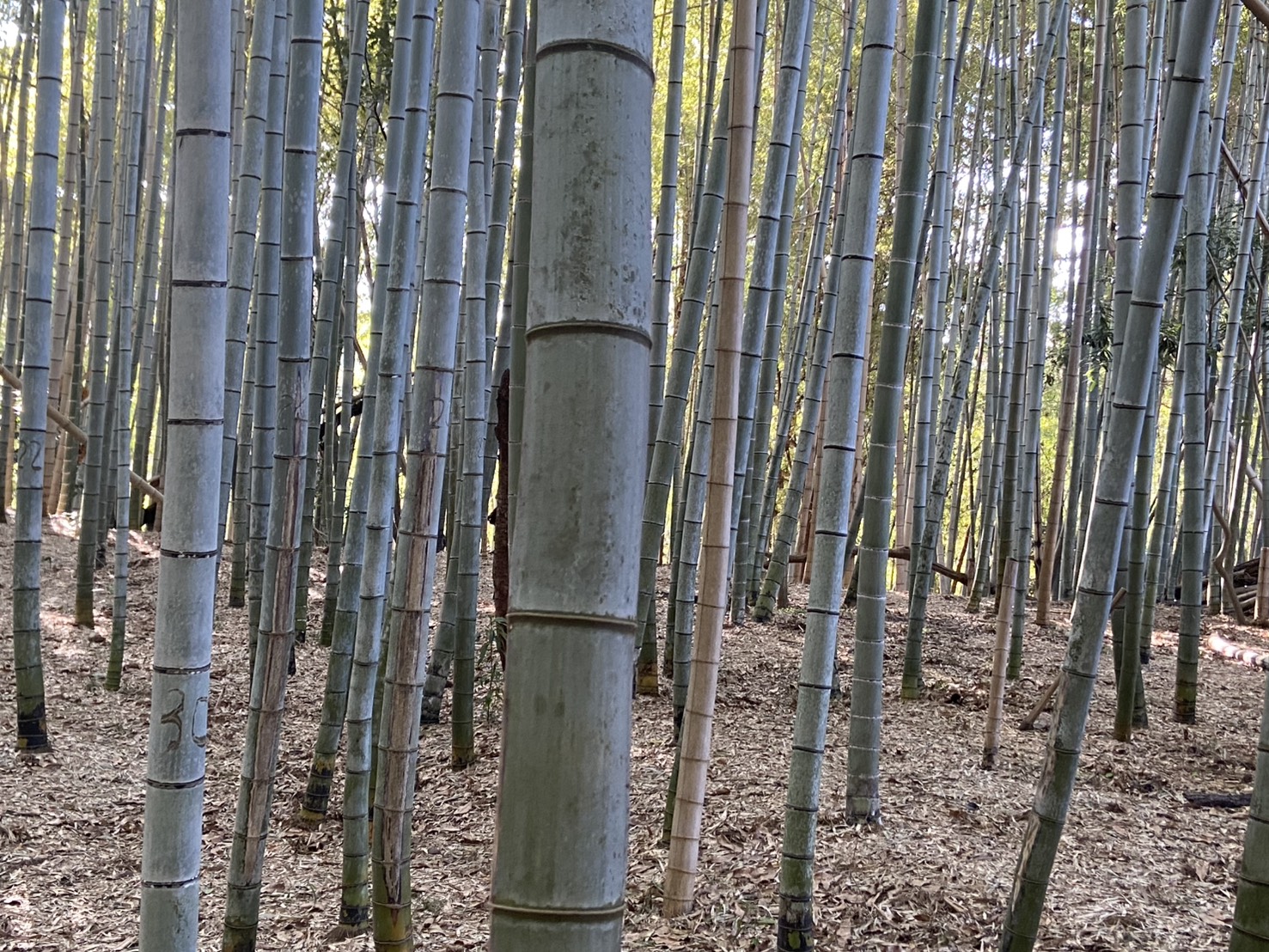 落ち葉を押しのけて頭を出しているタケノコもあります。