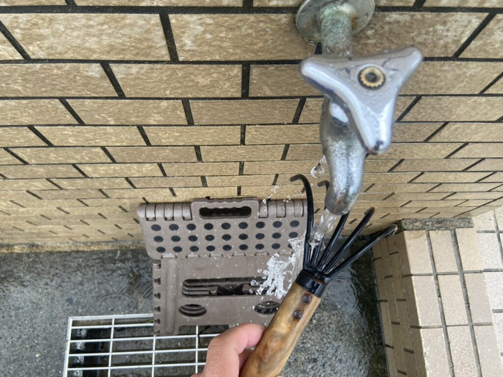 護岸道路脇にあるトイレ横の洗い場でキレイに洗ってサッパリしました。